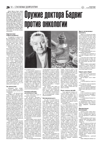 жием доктора Бадвиг в борьбе с ра- против онкологии